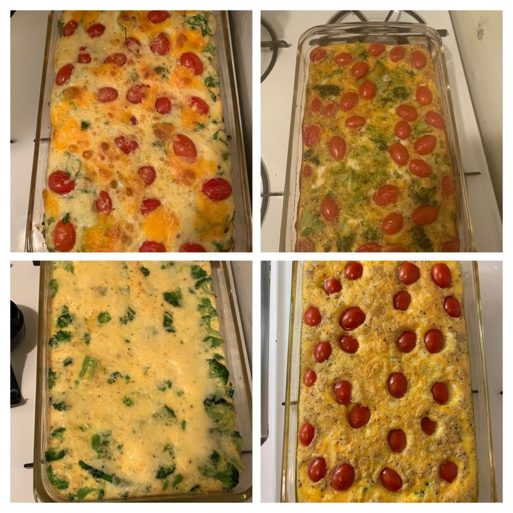 - Vegetables: Broccoli (frozen), Arugula, cherry tomatoes, zucchini, cherry tomatoes, whatever is in your fridge